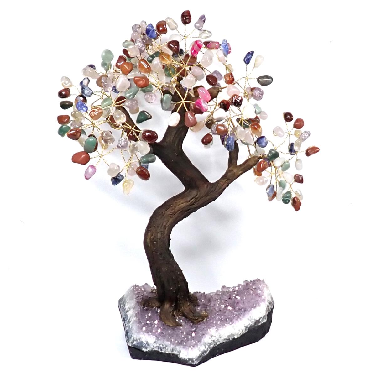 Grand Arbre de vie de pierres roulées mixtes sur socle en améthyste