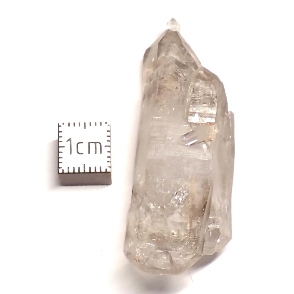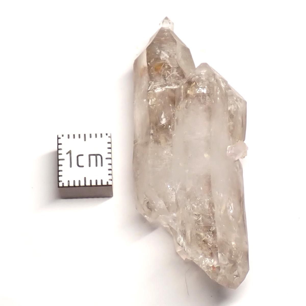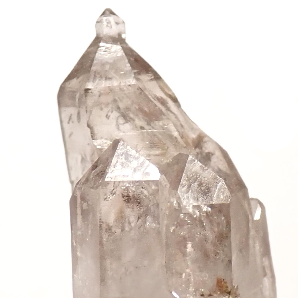 Cristal de roche avec fantôme d'améthyste, couleur proche de l'améthyste de Vera Cruz, exceptionnel, souvent accompagné de petits cristaux de fluorine verte. Force spirituelle et cosmique qui aide à capter nos guides ou développer la conscience, la médiumnité, les réponses à nos questions. Peut aussi servir à faire rentrer les actions spirituelles dans le corps physique, les organes, les chakras, les méridiens.